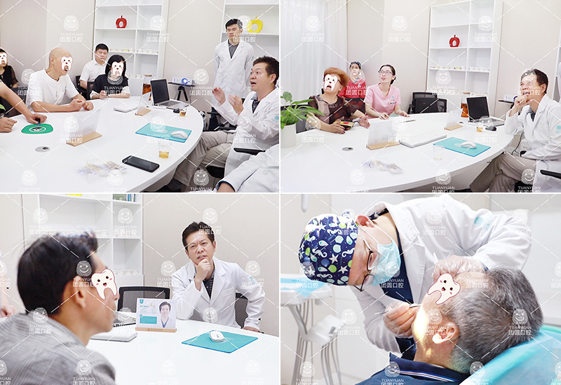 会诊现场,王涛教授聚精会神,对患者是否符合治疗条件,如何开展治疗,治疗周期及效果进行评估和论证;李院长分别从多角度、多层次入手,全方位为患者解答疑难困惑,深入剖析了每一位就诊患者的病情病因,真实体现了团圆口腔所提倡的“时时有责任,处处显匠心”的诊疗精神,让所有来院治疗的患者都倍感安心。