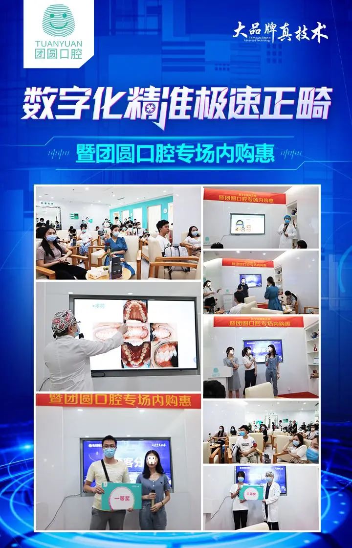 很多朋友对于牙齿矫正缺乏专业知识的了解,时常处于想矫正但不知道哪种方案适合自己的盲目状态,于是就选择最贵的,然而对于牙齿矫正来说,最贵的不一定是最好的,适合自己牙齿情况的才是最优解。为了让更多朋友了解口腔知识,对自己的牙齿情况有更清晰的认识,7月18日,团圆口腔特地举办了“数字化精准极速正畸——暨团圆口腔专场内购惠”活动,现场矫正大咖云集,通过高疑难矫正案例分析和大家进行面对面交流,更有国际有名厂商支持,现场直购牙套,福利不断,礼品不停,实实在在的优惠给到新老顾客们。